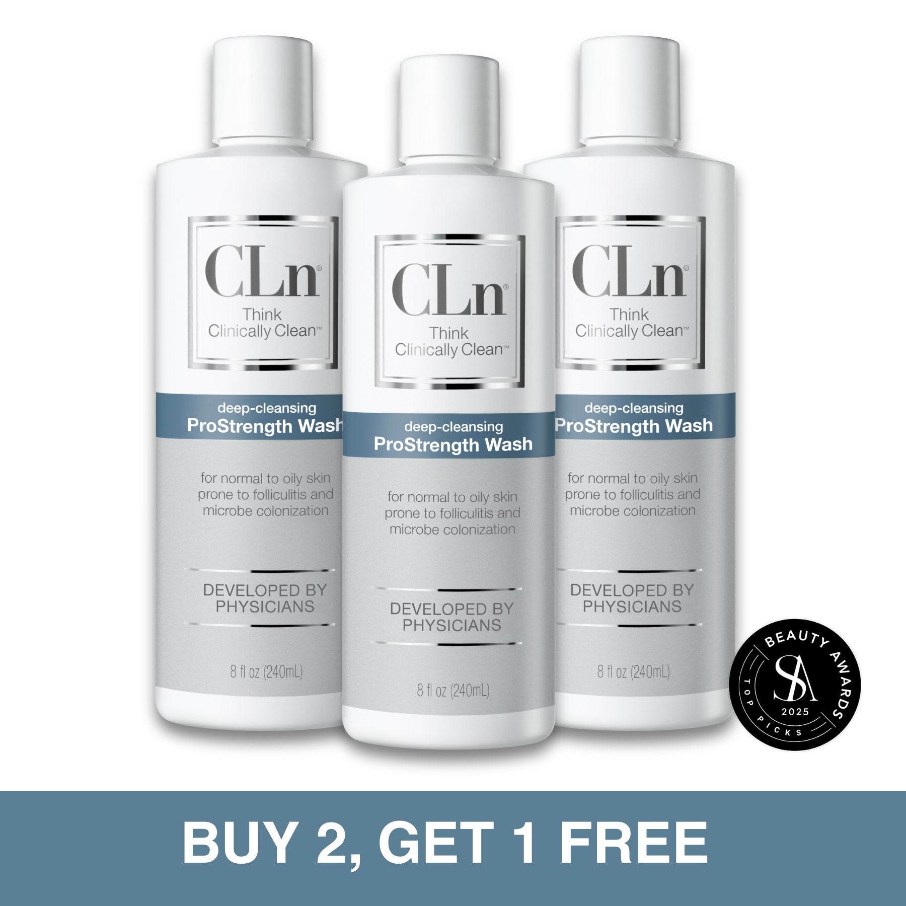 CLn ProStrength Wash was inspired by and created with dermatologists to deliver that cleansing power in a convenient, daily-use formula. Physicians for years have used sodium hypochlorite to support cleansing for compromised or problem-prone skin. However, traditional methods like medicated baths are inconvenient and difficult to maintain.